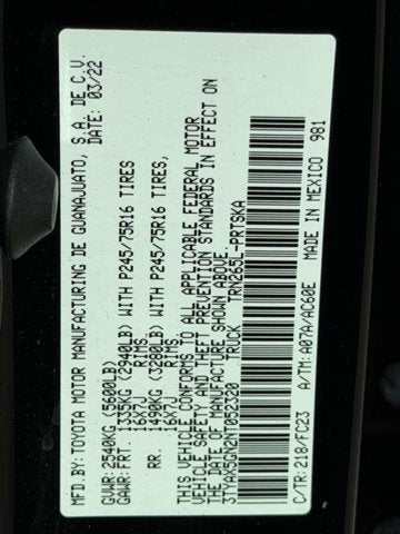 - Vehicle Name: Toyota Tacoma 2WD
